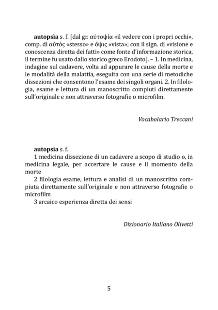 “Autopsia” raccoglie una selezione di poesie e un “epistolario elettronico” con un’esperta insegnante di astrologia transpersonale, che costituiscono una lucida e scrupolosa analisi fondamentale dell’esperienza umana, qualunque essa sia, inclusa l’inevitabile oscillazione tra stati di confusione e insofferenza e altri quasi di estasi; l’attenzione è fissata sullo “stare” privo di qualità che supporta e consente ogni movimento e che può risaltare nella quiete naturale. L’autore non si attribuisce affatto la paternità dell’opera, egli è soltanto “operaio”; ogni verso si imprime misteriosamente, a volte con sorprendente e meravigliosa semplicità mentre altre con enormi difficoltà a discapito del subordinato“mezzo”umano. Lo stile è senz’altro unico per non dire impossibile, ma non offusca in alcun modo la chiarezza delle immagini. L’epistolario presente nella seconda parte del libro fornisce una sorta di guida alla “rilettura” e una spiegazione delle poesie nella prima, un aiuto essenziale alla comprensione completa da parte del lettore.