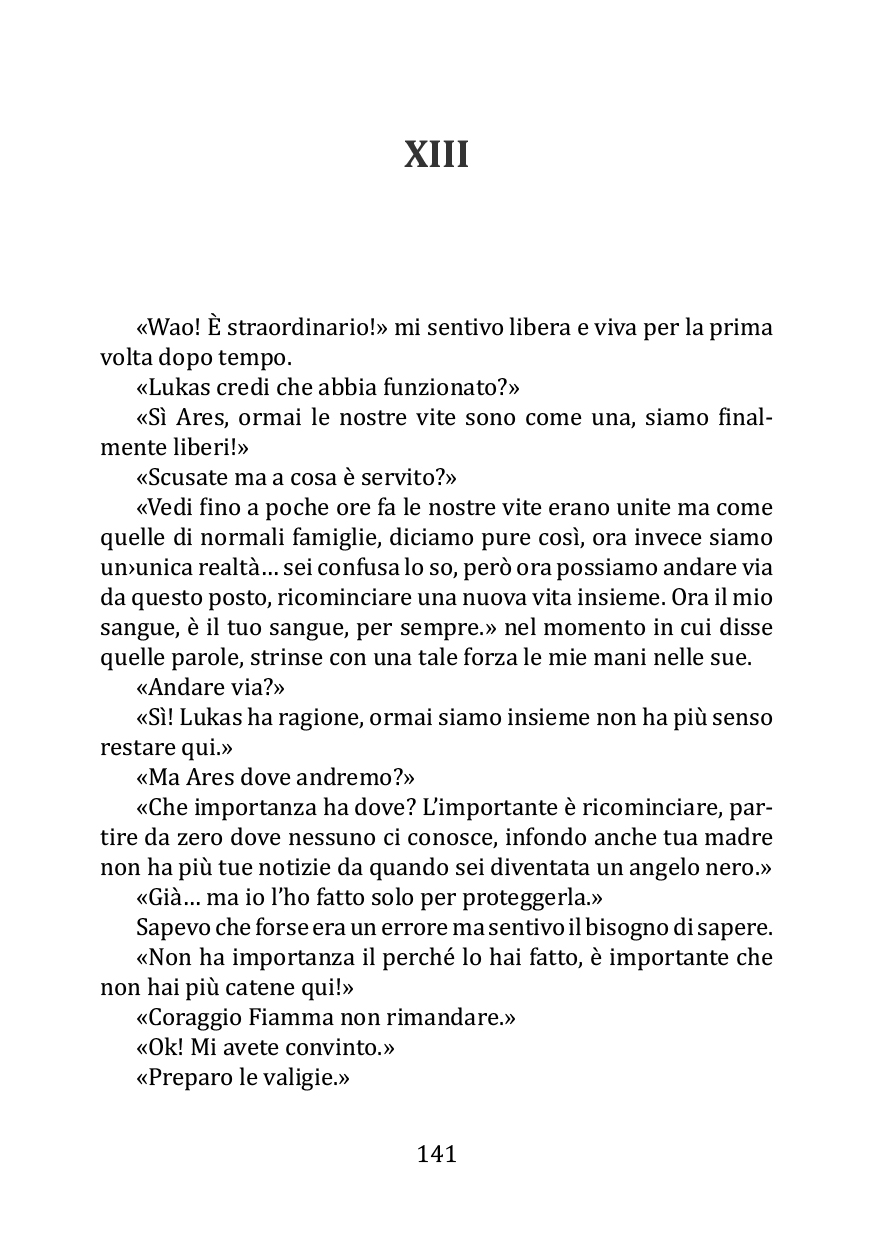 Fiamma, ragazza dal passato difficile, dai legami familiari quasi inesistenti, imprigionata in un mondo di insicurezze e sofferenze, si trova a vivere una realtà in cui i sentimenti, l'amore e l'amicizia, sembrano essere chimere complesse e incomprensibili. Il desiderio di abbandonarsi alla morte, di fuggire la vita, facendo del male a sé stessa, si fa pressante al mondo distorto di una realtà da sogno irreale e demoniaca di Fiamma. Saranno due angeli neri a sorvegliare la sua esistenza e a proteggerla da scelte estreme. Un fantasy misterioso, ricco di colpi di scena, accompagna il lettore in una dimensione di grande impatto immaginativo.