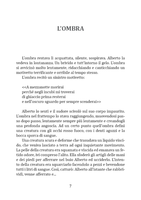 “Dark stories” è una prima breve raccolta di racconti fantasy horror. Un mix di storie nato dopo una depressione. L'elemento principale che le accomuna è la paura che assume, di volta in volta, i toni della disperazione, della desolazione, della tristezza e della sofferenza. Questo viene reso attraverso la profonda caratterizzazione dei personaggi, grotteschi e ripugnanti, e la ricca descrizione degli ambienti, tetri e oscuri. Al loro interno le storie si popolano però anche di personaggi semplici e leggeri, il richiamo alla realtà. Con un finale sempre a sorpresa e mai scontato, ma sempre da far “accapponare” la pelle. Nella prima l'autore viene inseguito da un'orribile ombra che in realtà è una creatura deforme e mostruosa che vuole ucciderlo. Nella seconda storia, un litigio con i genitori, porta la protagonista ad avventurarsi in una montagna oscura e tenebrosa: "Dark Side" Succederanno cose orribili. Nella terza, il personaggio principale terrà con sé un gatto nero arrivato per caso. Accadrà di tutto. Nella quarta storia un quadro magico si impossesserà del protagonista, trasformandolo in un mostro. Una serata in compagnia di un amico si trasformerà in un orribile incubo. Nella quinta ed ultima, un ragazzo con il dono della recitazione, durante uno spettacolo vivrà un'avventura da brivido e di terrore.