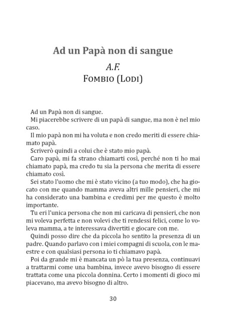 Ognuno a suo modo, ha immortalato in queste pagine un pezzo della propria anima e del proprio passato. Un libro fatto per ricordare, per dire "grazie", per dire "avrei preferito avere un altro padre" oppure "se anche tu non fossi stato mio padre ti avrei amato lo stesso per l'uomo che eri".