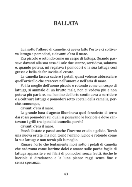 Un racconto in forma diaristica redatto in oltre ventitré anni di vacanze estive in Liguria, dove si è trasferita la sorella dell’autrice. Lucia ha raccolto storie raccontate da persone nei diversi luoghi in cui si era recata, spinta dalla sua curiosità di giornalista, di grande viaggiatrice e di artista. Nella casa presa in affitto in Liguria scopre anche la passione per la pittura e la fotografia, sviluppando una notevole abilità nell’acquerello e nel ritratto. Amante della natura e del mare, scrive poesie e raccoglie nel tempo le osservazioni, le emozioni e le esperienze vissute in tutti questi anni che l’hanno segnata moltissimo anche perché in Liguria è morto il marito, dove è sepolto. Lucia ha preso spunto da ogni racconto sentito, da ogni fatto di cui è stata testimone, di ogni paesaggio visitato e di ogni tradizione locale rielaborandoli nel tempo attraverso una prosa poetica e la sua fantasia ambientando il tutto in un borgo inesistente in una cornice ligure