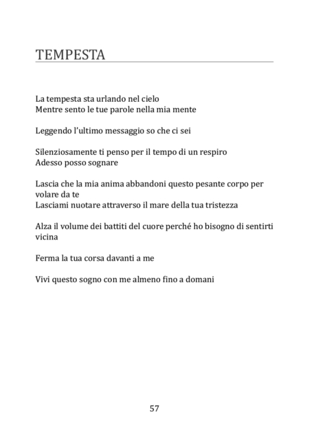 La raccolta rappresenta per Germano il modo per condividere con il lettore il proprio intimo, cercando di coinvolgerlo in un cammino variopinto nel quale a tinte sfumate si sovrappongono i colori più intensi della passione.