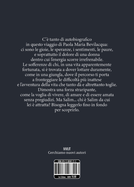 Il romanzo si articola in un viaggio a tratti fantasy, a tratti mistico e spirituale, e a volte crudele. In una società dove le notizie di cronaca nera, irrompono sulle testate e rimbalzano sui media nazionali. Qui la paura della donna scrittrice e la fantasia dell’autrice hanno restituito e fatto loro un episodio crudele e brutale, probabilmente avvenuto. La domanda che ci si pone, leggendo le emozionanti pagine del romanzo, è: Salim è maschio? Salim è femmina? Salim chi è? Lo si scoprirà solo leggendolo fino alla fine.