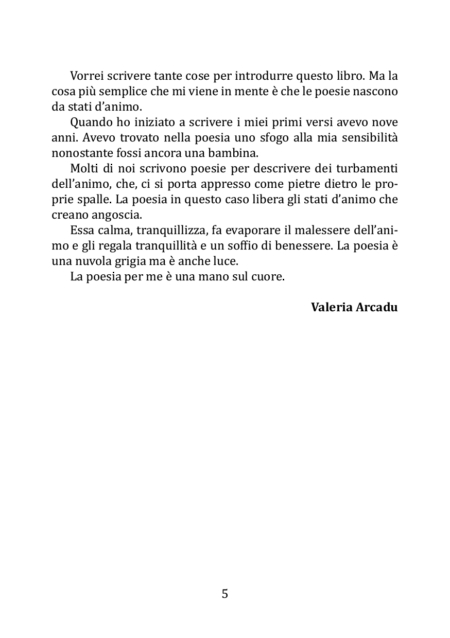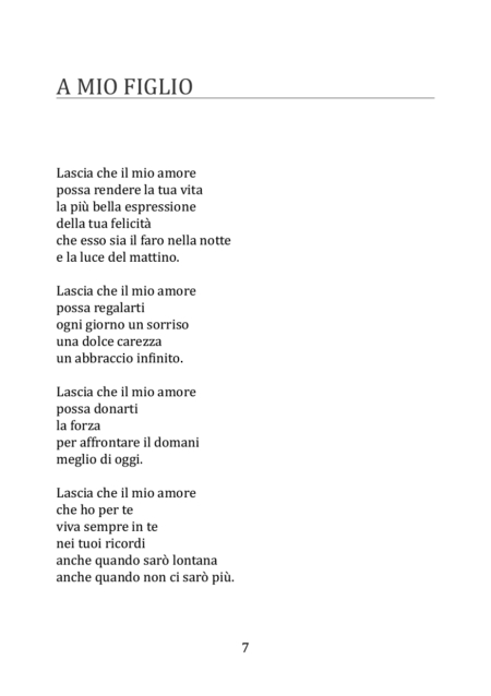 Quello che affiora è una poesia che vuole darsi completamente agli altri e che vuole penetrare nel profondo del lettore. La poesia è voce del cuore, voce dell’anima e come tale sgorga come l’acqua di un ruscello dolce e in modo soave oppure come l’acqua di una cascata impetuosa e forte.