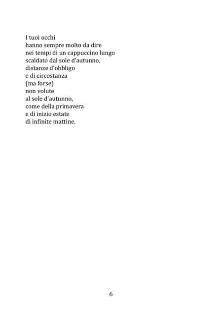 Le composizioni sono minimal nel numero dei versi e delle parole, per lasciare un tratto indelebile, caldo e vibrante a chi si fa coinvolgere nella lettura avvolgente di Ottanio.