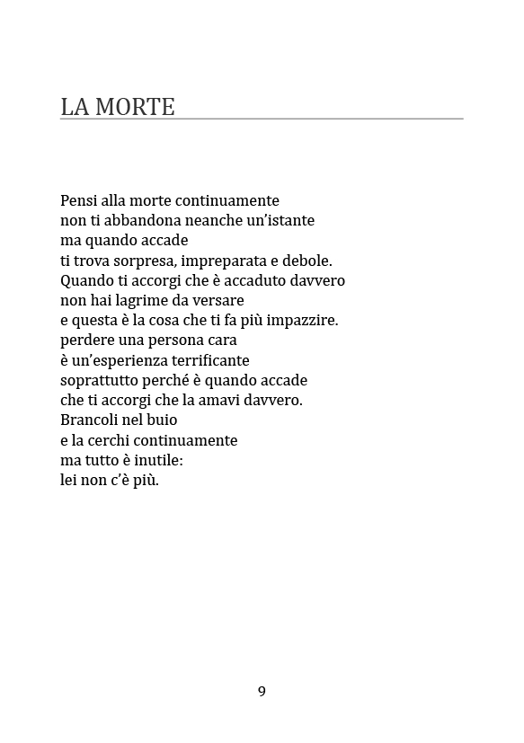 In “Turbolenta vita“ l'Autrice si apre a nuove esperienze poetiche riguardanti la sua vita, che lei stessa definisce "strana", perché, come già le accade in "Racconti sparsi" trova che la vita sia “imprevedibile, strana, strampalata, un po' screpolata, assurda e quindi vera.” Come la stessa Autrice, anche le sue poesie sono differenti da ciò che ci si aspetta di leggere: perché la vita si rivela spesso una continua sorpresa! L'autrice dedica il libro a sua madre Mariateresa, che l'ha cresciuta tra mille sacrifici; quando Francesca doveva studiare una poesia, sua madre gliela faceva leggere e rileggere infinite volte per pomeriggi interi, poi gliela faceva registrare; la notte, anche se stanca, la sua mamma si alzava e aspettava che lei dormisse per far partire la registrazione; la mattina, a colazione, gliele faceva ascoltare nuovamente. Sarà per questo che Francesca Facoetti è diventata una scrittrice.