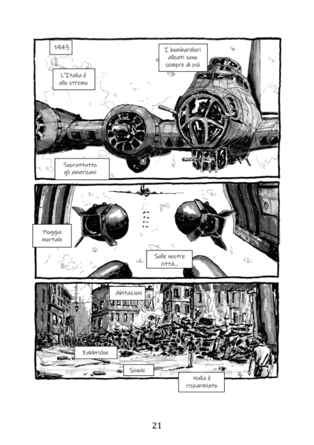 La storia dell’aeronautica è sicuramente sviluppo tecnologico ed innovazione ma anche, e soprattutto, una storia di esseri umani. Del loro valore, delle loro paure, dei loro successi e dei loro fallimenti… È l’interazione simbiotica tra il pilota ed il mezzo meccanico la chiave di lettura della conquista dei cieli. Dal primo volo, di qualche centinaia di metri, dei fratelli Wright nel 1904, al primo uomo sulla Luna, nel 1969, sono passati solo 65 anni. In quale altra “sfida” l’essere umano è stato così veloce ed appassionato? In questa breve trilogia si raccontano principalmente la solitudine, la malinconia, le paure ed il coraggio dei piloti. In un legame indissolubile con i loro mezzi aerei ed in epoche in cui il volo era ancora pionieristico. La prima storia è liberamente ispirata ad Antonio Locatelli, il primo ad attraversare la Cordigliera delle Ande a bordo di un aereo (uno SVA 5). La seconda prende liberamente spunto dalla strage di Gorla, quella dei piccoli martiri, avvenuta in realtà nell’ottobre del 1944, vide dei B17 sganciare più di 170 bombe sugli edifici scolastici. La terza è una storia intimista sulla fine.
